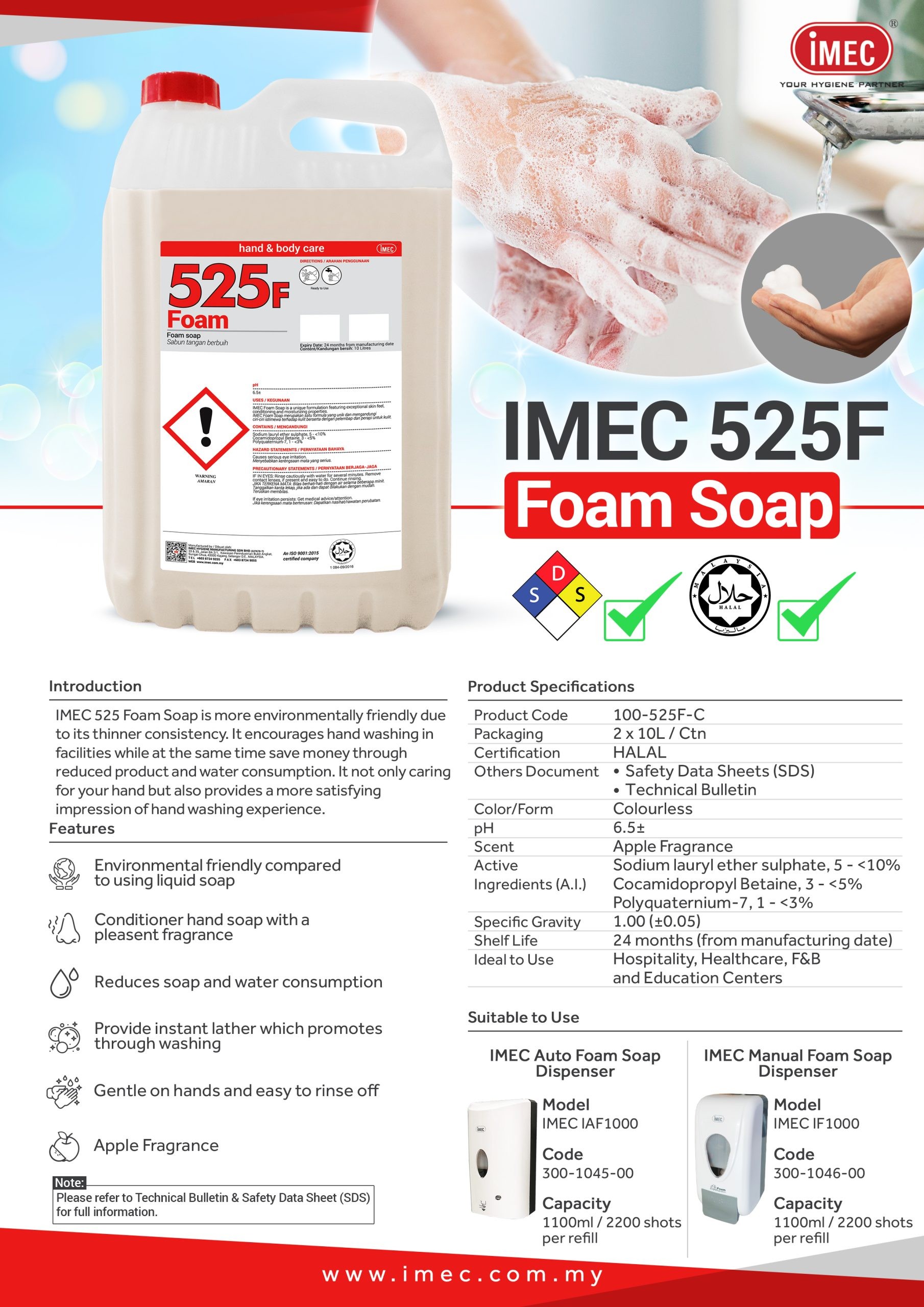 IMEC 525MS Anti-Bacterial Liquid Medic Hand Soap, Halal, 6 x 500ML / 5L