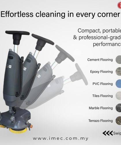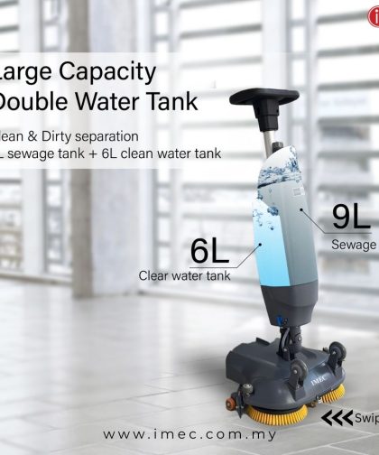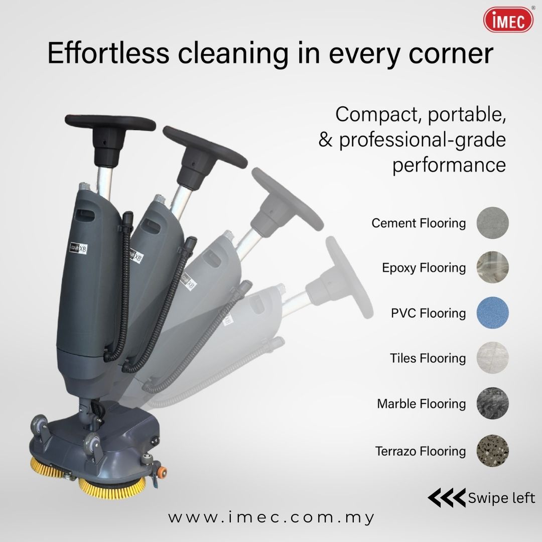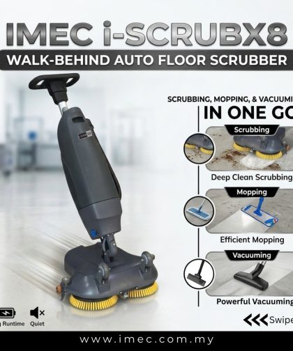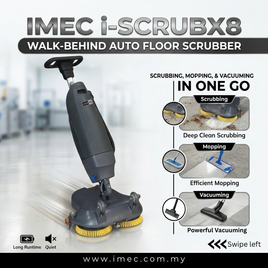 IMEC i-SCRUBX8 -WALK BEHIND BATTERY OPERATED AUTO FLOOR SCRUBBER 18″ 9L 24V DC C/W 2PCS BRUSH, 2PCS PAD HOLDER, LITHIUM BATTERY & CHARGER