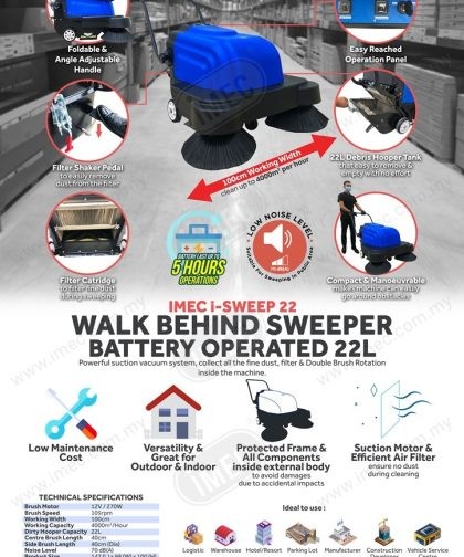 IMEC i-SWEEP 22 Walk Behind Sweeper, Battery Operated