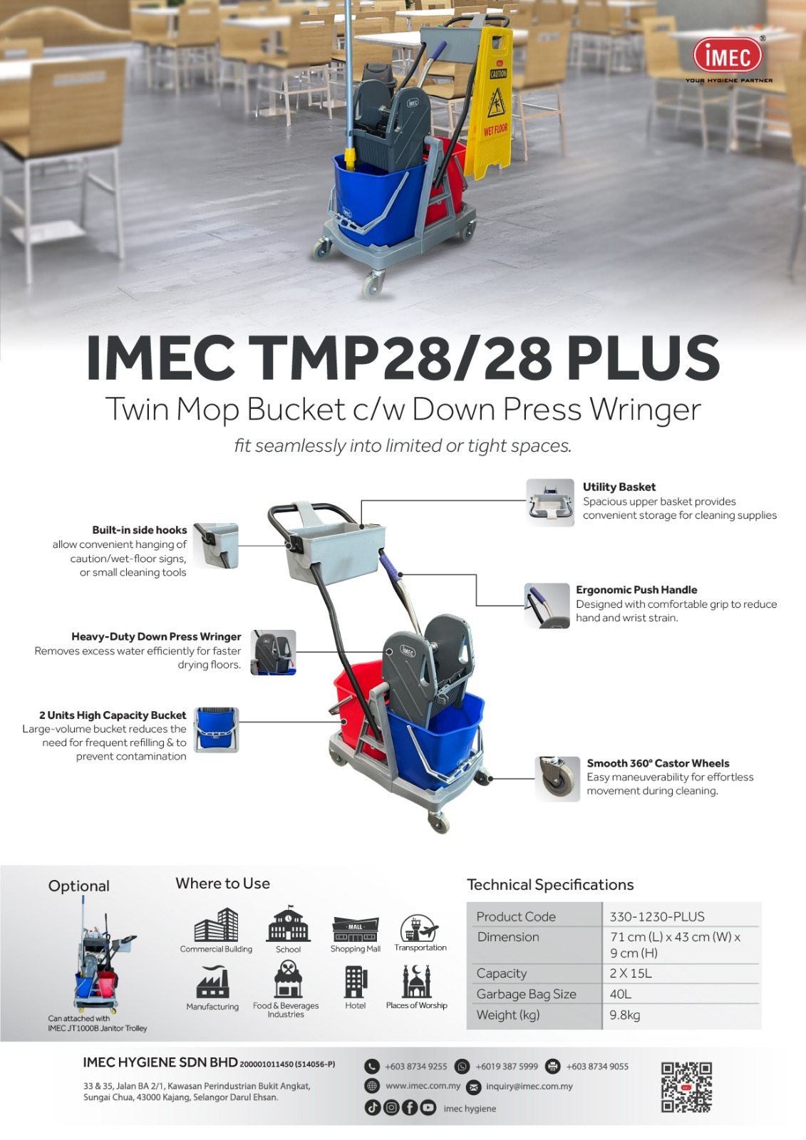 IMEC TMP28/28 PLUS – Twin Mop Bucket with Down Press Wringer (15L)