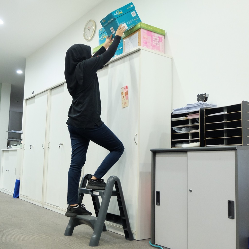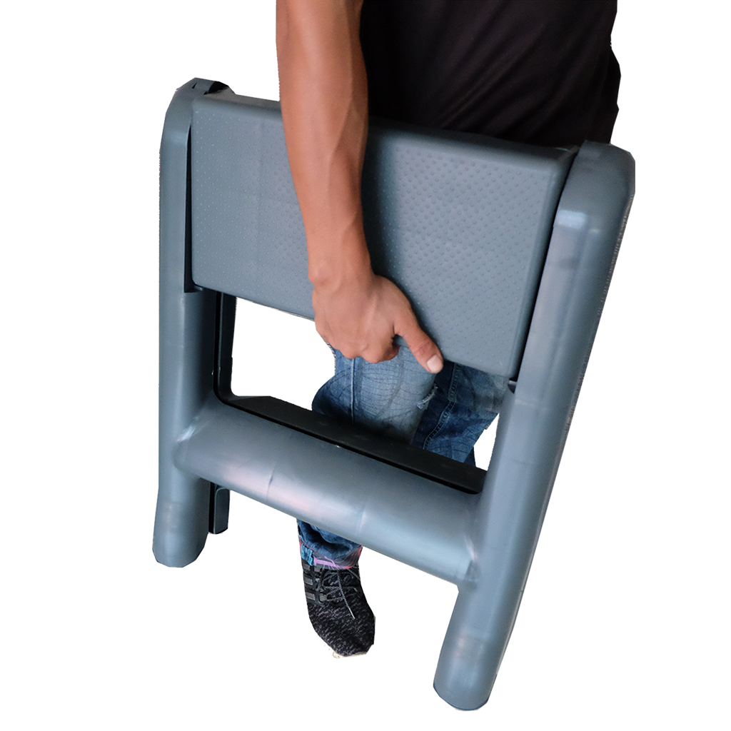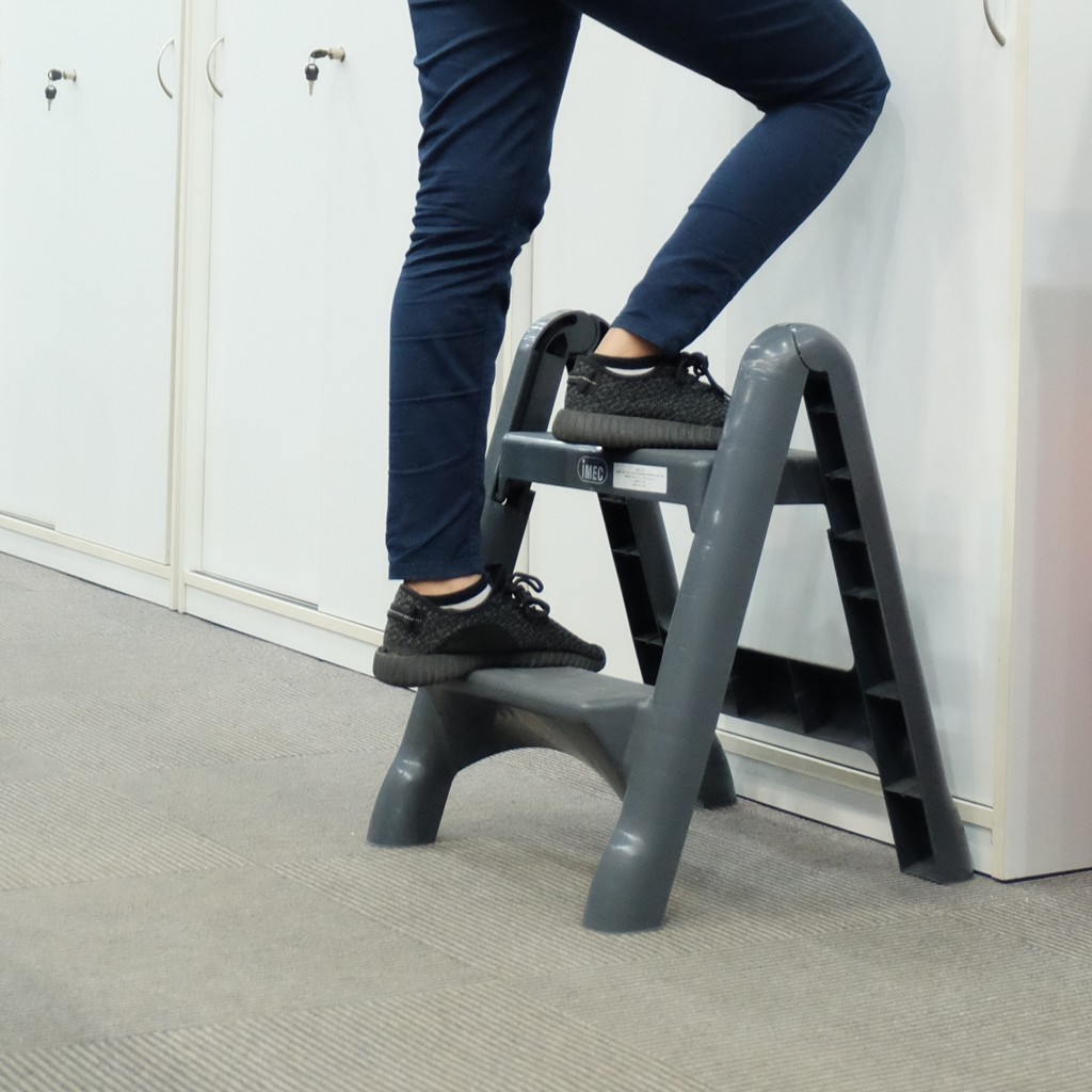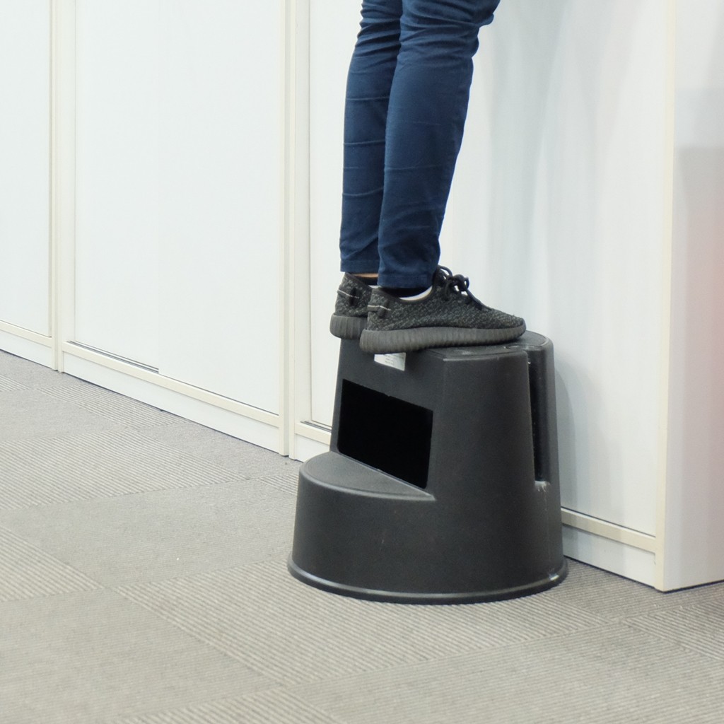 - The Mobile Two-Step Stool is heavy-duty and glides easily. When stepped on, the rubber casters retract. Slip-