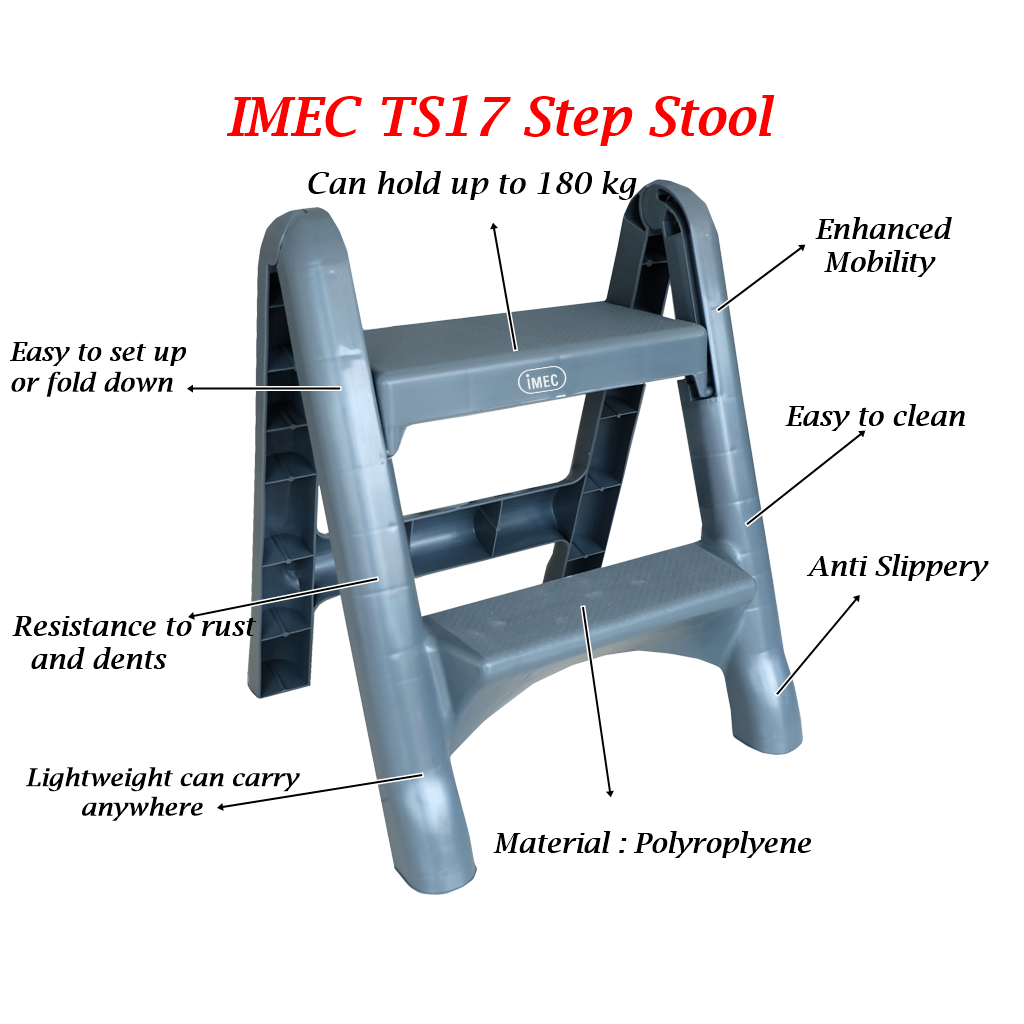 IMECÂ TS17 Two Step Folding Step Stool | 1-122 | 42 (L) x 16 (W) x 63 (H)Â | 2.55 kg | Grey |