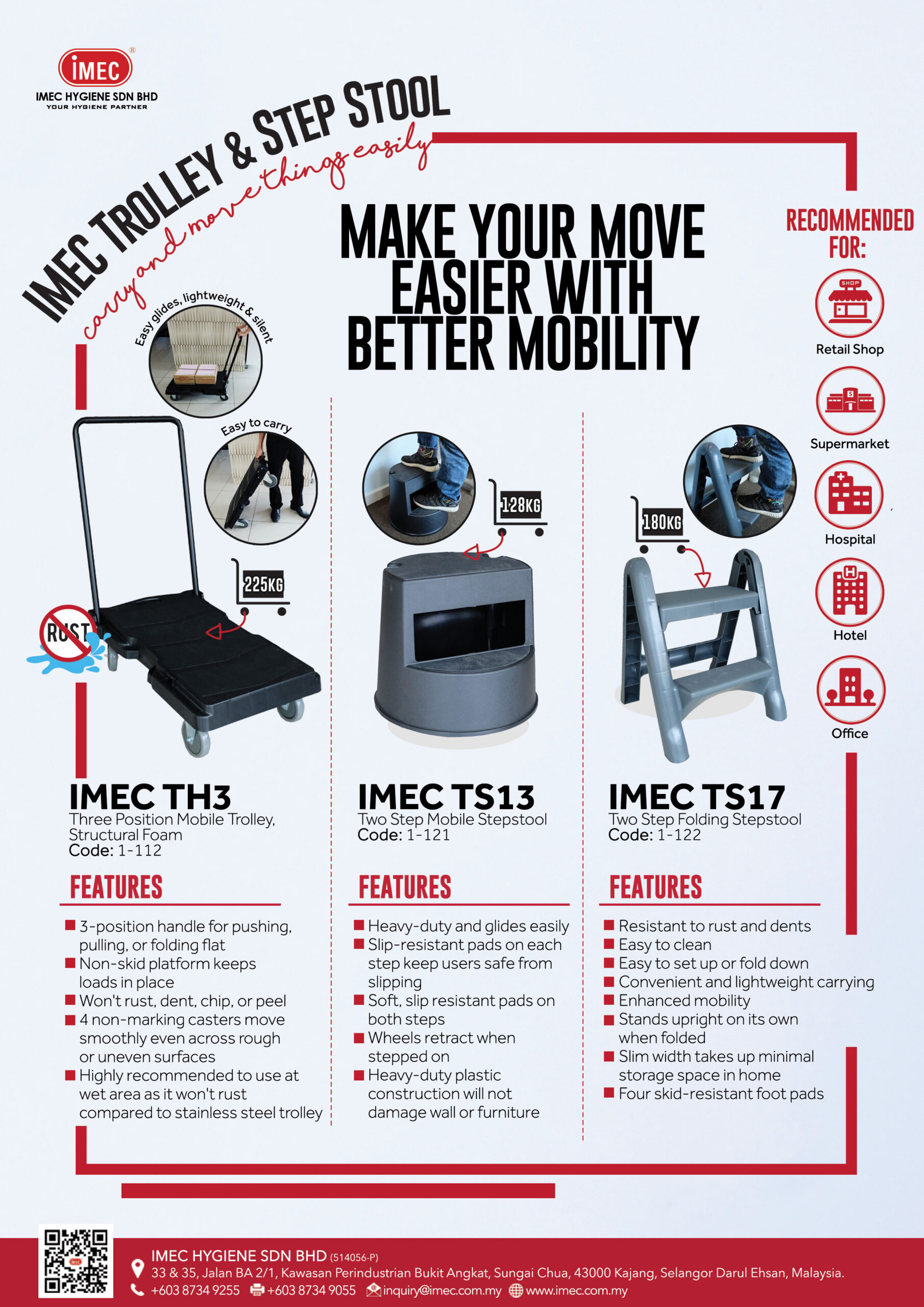 IMEC TS13 Two Step Mobile Step Stool | 1-121 | 41 (D) x 35 (H) | 1.84 kg   | Black | |